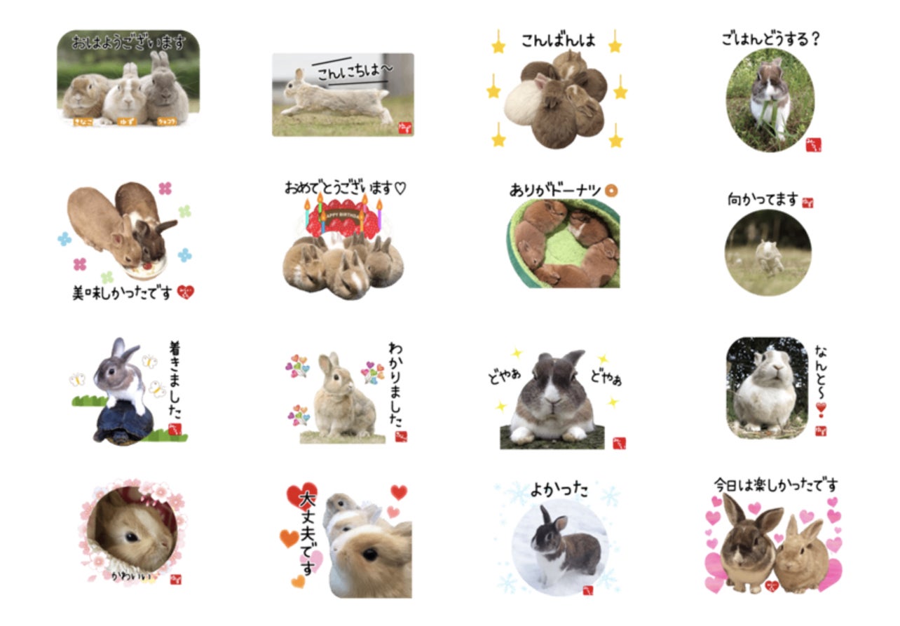 「毎日使えるかわいいうさぎのスタンプ」16種類