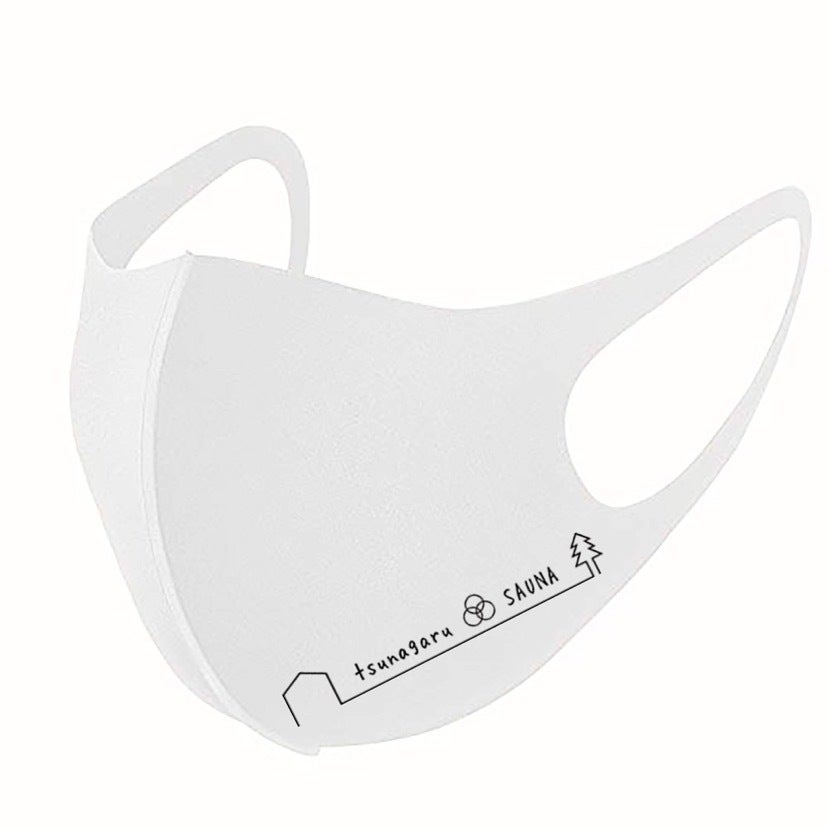 コロナ禍の今、咳エチケットととして必要不可欠なマスク。シンプルな白色のマスクに、「つながるサウナ3.0」のロゴが入っています。このマスクをつけて、お披露目会でお会いしましょう!2021年5月より順次、発送を行う予定です。