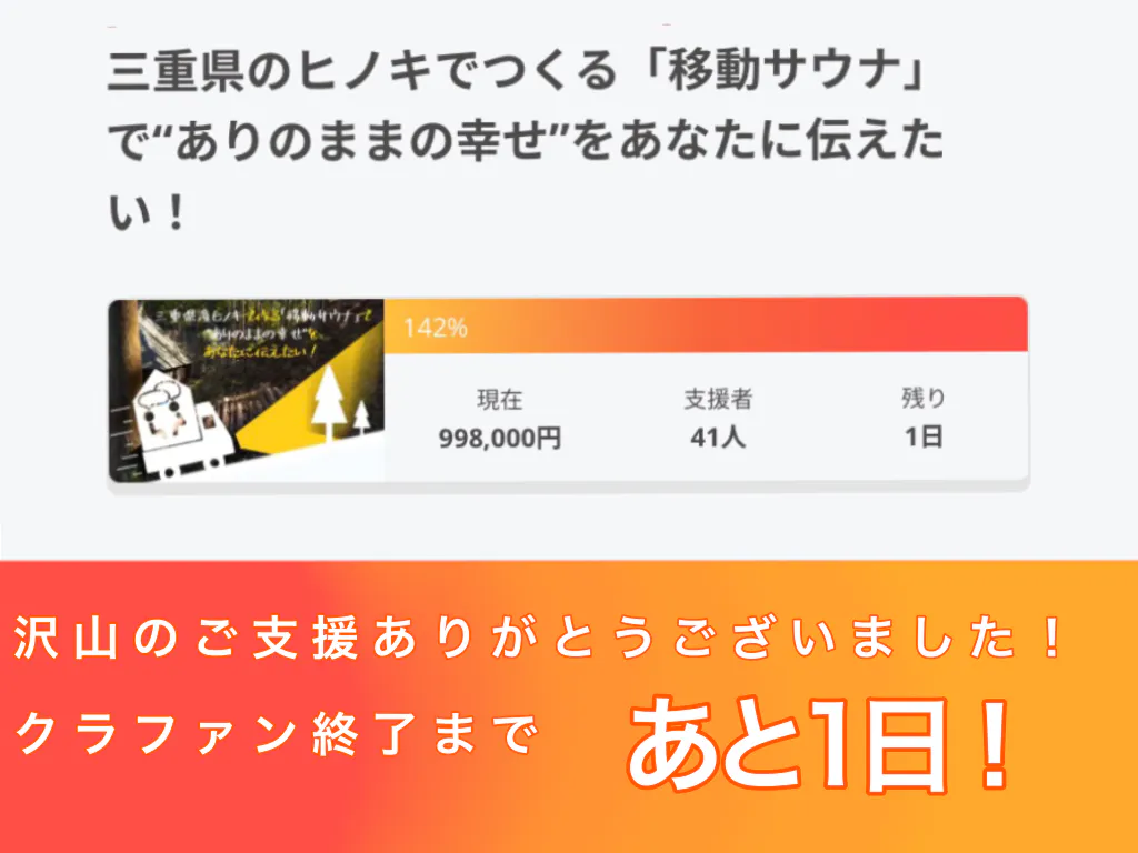 そういったこれからの活動のためにも、あと1日ですが最後までご支援のほど何卒よろしくお願い致します。