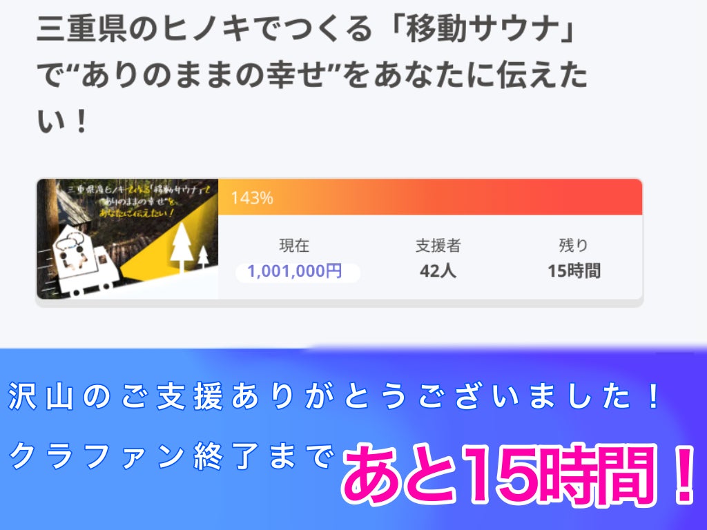そして、いよいよクラファン終了まで15時間となりました!お披露目会当日、皆さまとお顔合わせできる日を楽しみにしています。