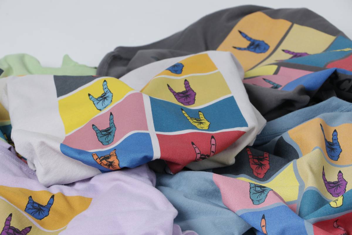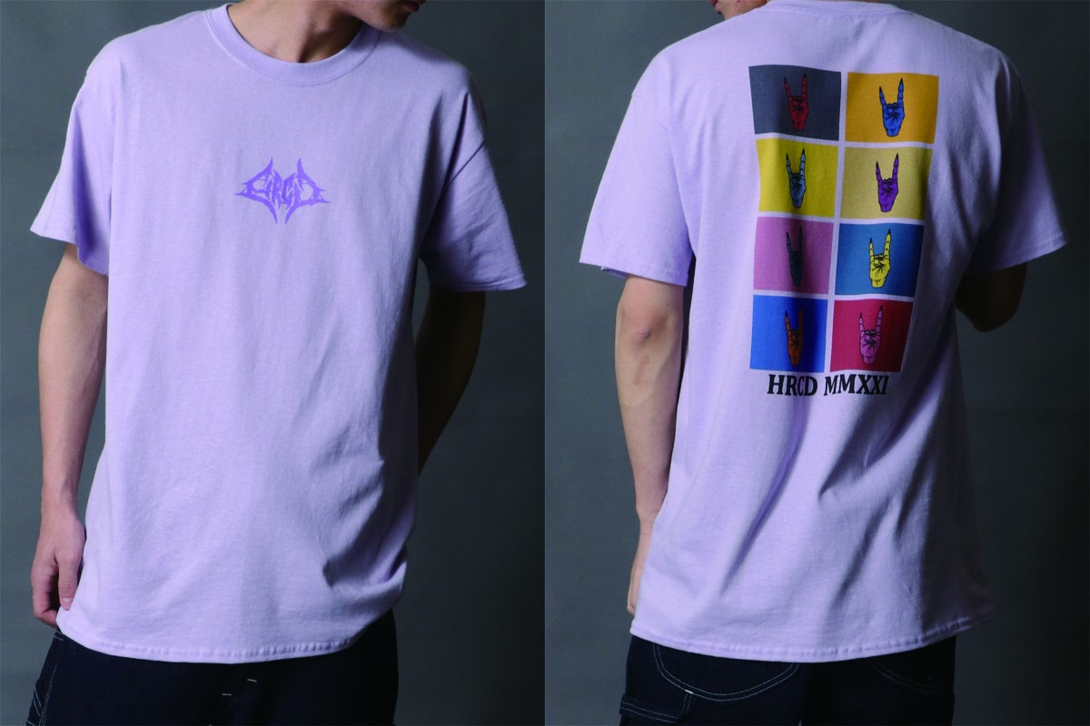バックプリントには、ロック、メタル好きにはお馴染みのメロイックサインをモチーフに、90年代のPOPARTのポスターを思わせるデザインをプリント。