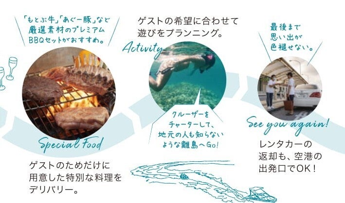 この新しいリゾートスタイルは、不特定多数の人と会うことが不安なWithコロナの時代にフィットし、さらに進化を続けています。具体的にイメージしていただくために、Reefingで味わえる体験を、旅のストーリーで紹介させていただきます。
