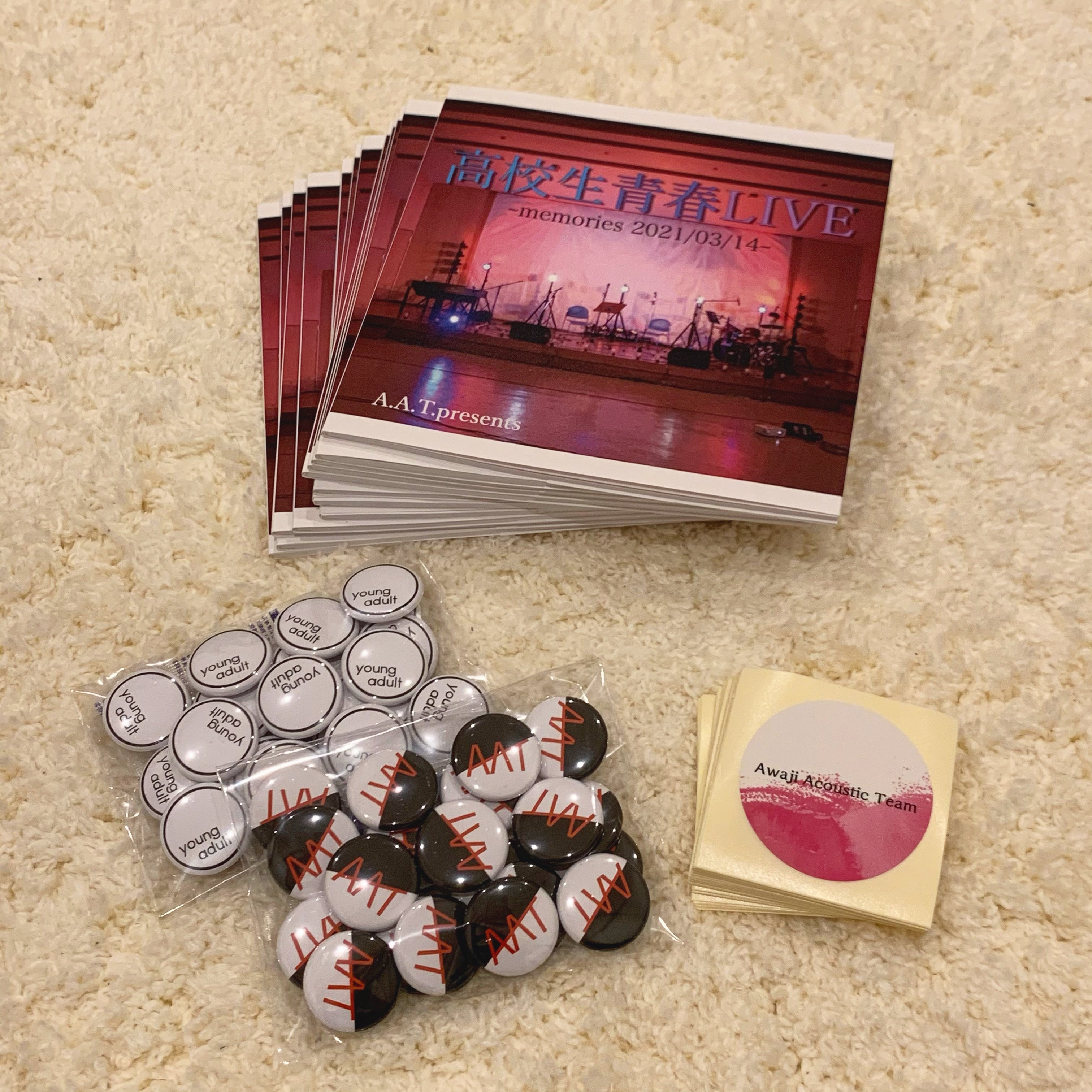 2021/05/23 11:47この度は、クラウドファンディングにて多くのご支援をいただき、誠にありがとうございました!ご支援いただいた方へのリターン品が完成しました!予定より遅れてしまい申し訳ございません。缶バッチ・A.A.T.のロゴ入り・【young adult】…子供でも大人でもない高校生を表現しています。ステッカー・A.A.T.のロゴ入りフォトブック・イベント当日や事前準備の写真を使用。・支援者の方へのメッセージページ有コロナ禍でも安全にイベントを行い、たくさんの高校生がまた一つ青春を増やすことができました。自分のパフォーマンスを誰かに観てもらったり応援してもらうことは、高校生にとって本当に貴重な経験であり、出演者、スタッフ、視聴者、そして支援者の皆さんと作り上げたあのひとときは、とても楽しい時間でした。本当にありがとうございました!支援者の方にとっても良い思い出になっていれば嬉しいです。これからもAwaji.Acoustic.Team.は活動していきますので、その時はご支援よろしくお願いします! もっと見るリターン品について