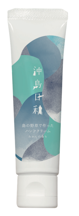 沖島の野草(ムベ、枇杷の葉)が入ったオーガニック化粧品メーカー(株)アルデバランと共同開発したハンドクリーム。