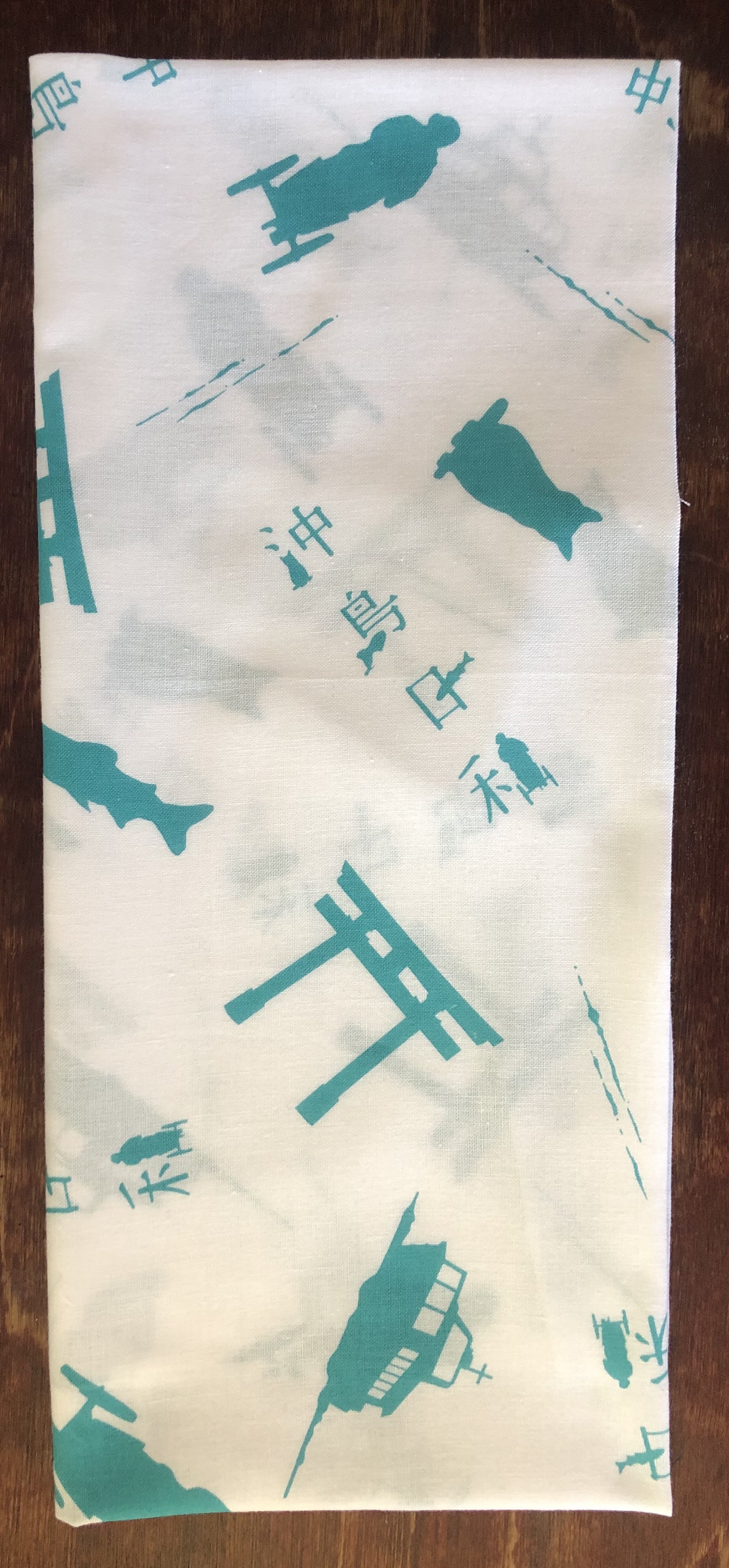 沖島のゆかりのあれこれが散りばめられた手ぬぐいです