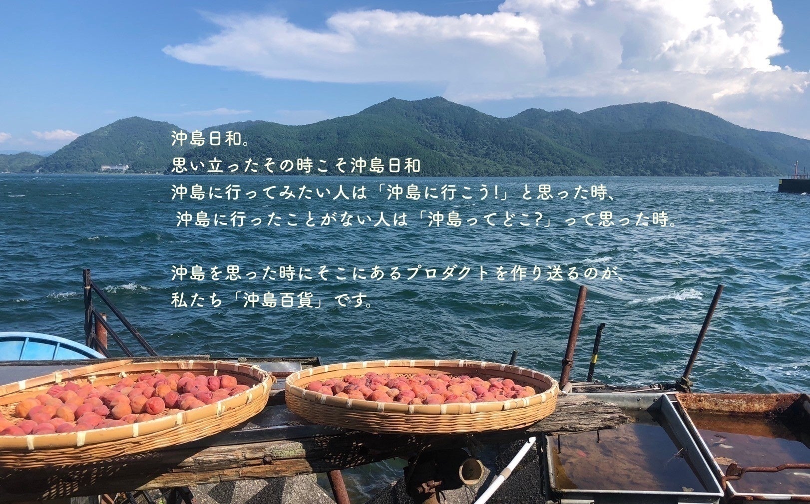そんな時こそ、その人にとっての沖島日和。そんな沖島日和な人たちに、沖島の今の空気感と、沖島産の商品をお届けします。