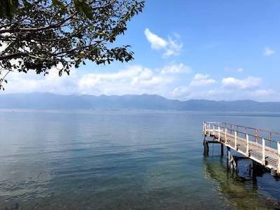 琵琶湖は静かだ。海に比べてとても静かな水面がそこに漂っている。ザッパーンではない、ゆらゆらが そこにはずっと存在する。そのゆらゆらからなのか、ここで流れる時間も空気もコミュニケーションも なんだかゆらゆらしている。そのゆらゆらな感覚は、沖島独自なのかはわからないけれど、視覚・嗅覚・ 味覚・聴覚すべてから凪を感じずにはいられない。それは懐かしいと言うと嘘になる。それとはちょっ とちがった、何もない感覚に近いのかもしれない。水がこれだけ豊富で、水に四方が囲まれているから なのかもしれない。そこに理由を求めるのではなく、このゆらゆらな感覚そのものを沖島での凪な体験 と捉えたいと思う。