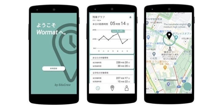 教員の労働環境に関して、簡単には解決できない問題であるということは重々承知しています。しかし、私にできることが何かないだろうか。そんな思いから、多くの先生方にお時間をいただき、お話を伺いました。「月に120時間以上も残業(※)している。しかし、管理職には何も言われないし、自分がどれだけ学校にいるかも正確には把握していない。」このような声は、一人二人の先生からではなく、本当に多くの先生から寄せられました。そんな聞き取りをしている時、「教員の労働による公務災害の申請時に、総労働時間の客観的証拠の入手に苦労した」という話を耳にしました。この時思いつき、今回作り上げたものが、在校時間把握アプリ『Wormat(ウォーマット)』です。