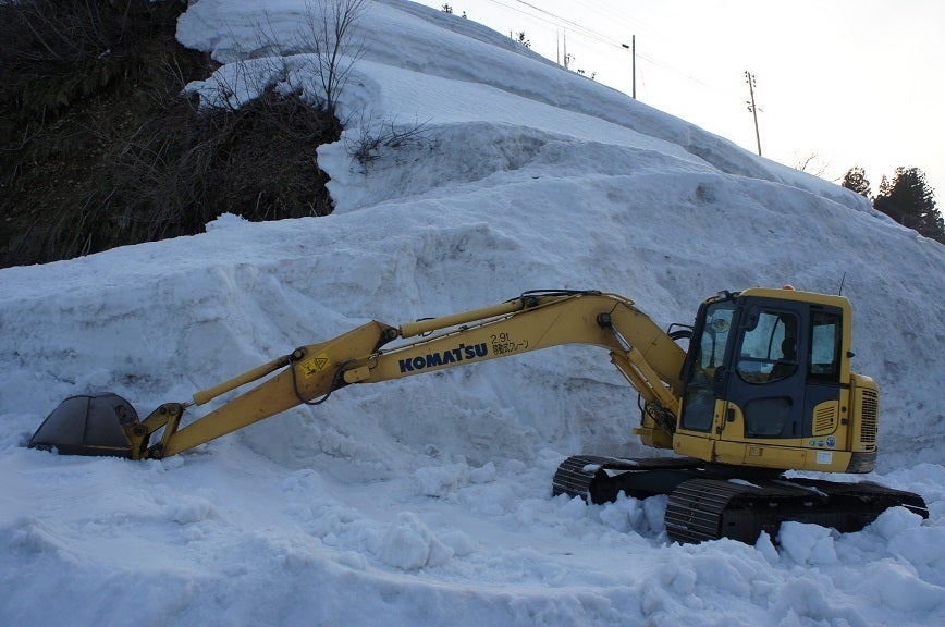 重機を使って雪を崩すのも雪国では日常茶飯事。 早く春が来ないかな。