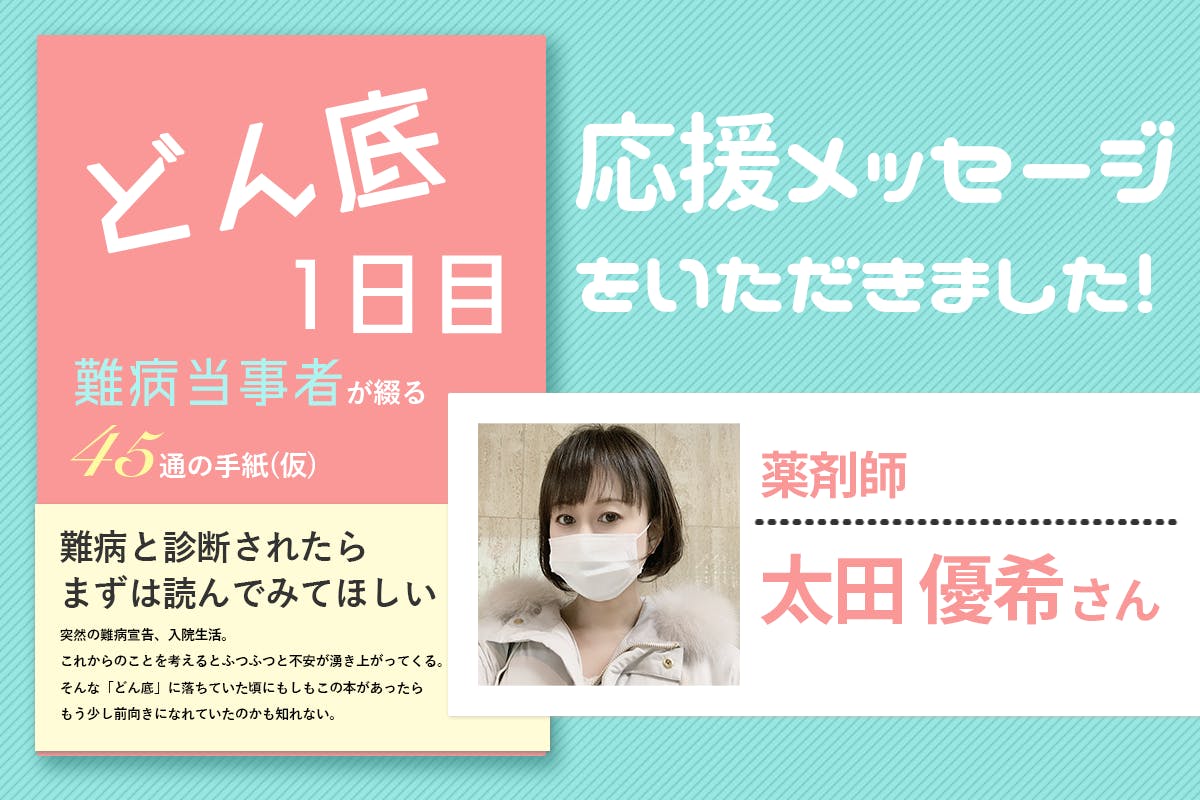 本日は、難病当事者で薬剤師の太田優希さんから、応援のメッセージを頂きました!