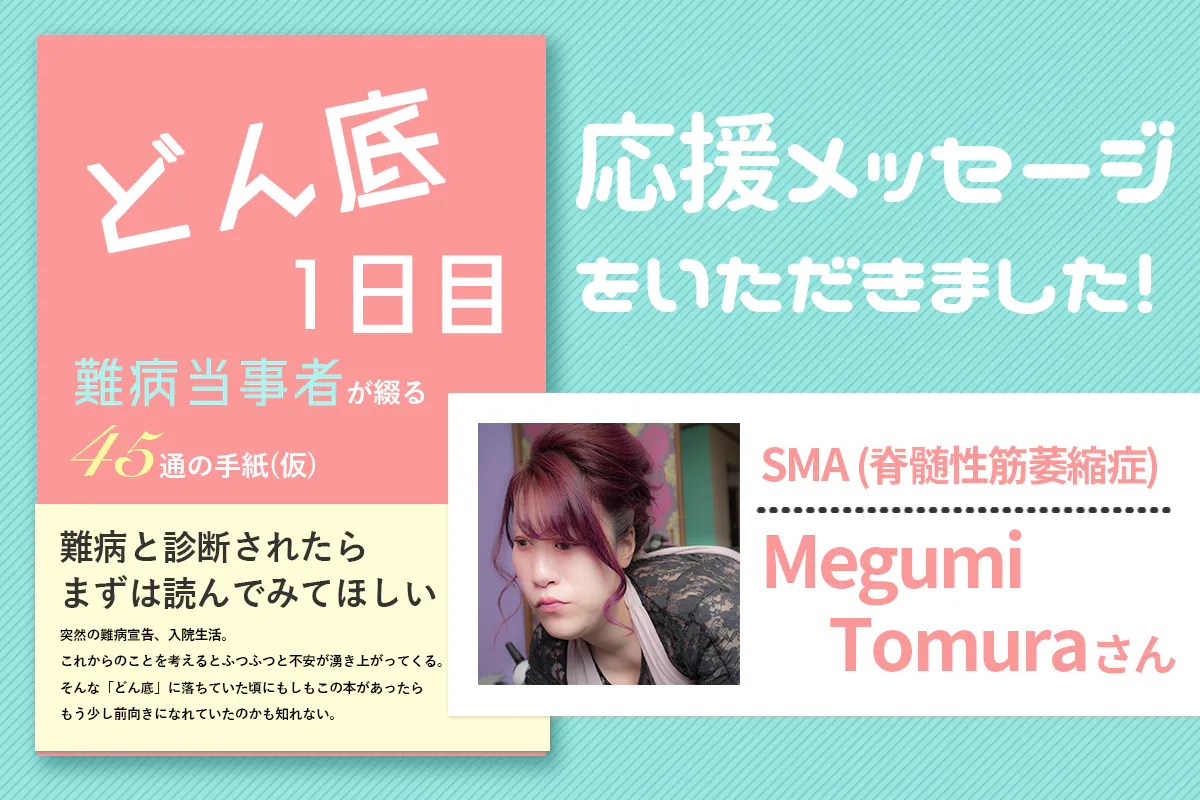 さて、本日は脊髄性筋萎縮症当事者のMegumi Tomura様から応援メッセージを頂きました!