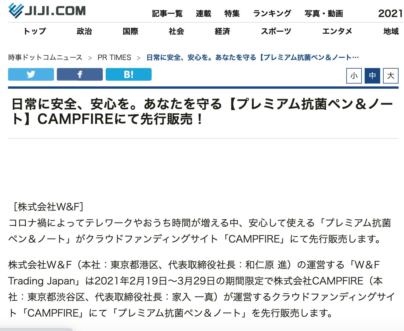 この度、jiji.com様に本製品のリリースを掲載いただきました!