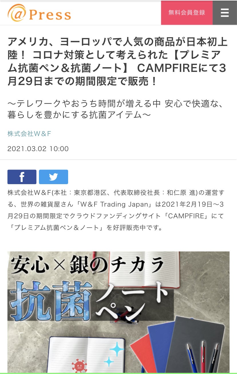 こんばんは!本日は@press様に記事をご掲載頂きました!皆様、いつもご支援ありがとうございます!引き続き頑張っていきますので応援よろしくお願いいたします!世界の雑貨屋「W&Fトレーディングジャパン」スタッフ一同