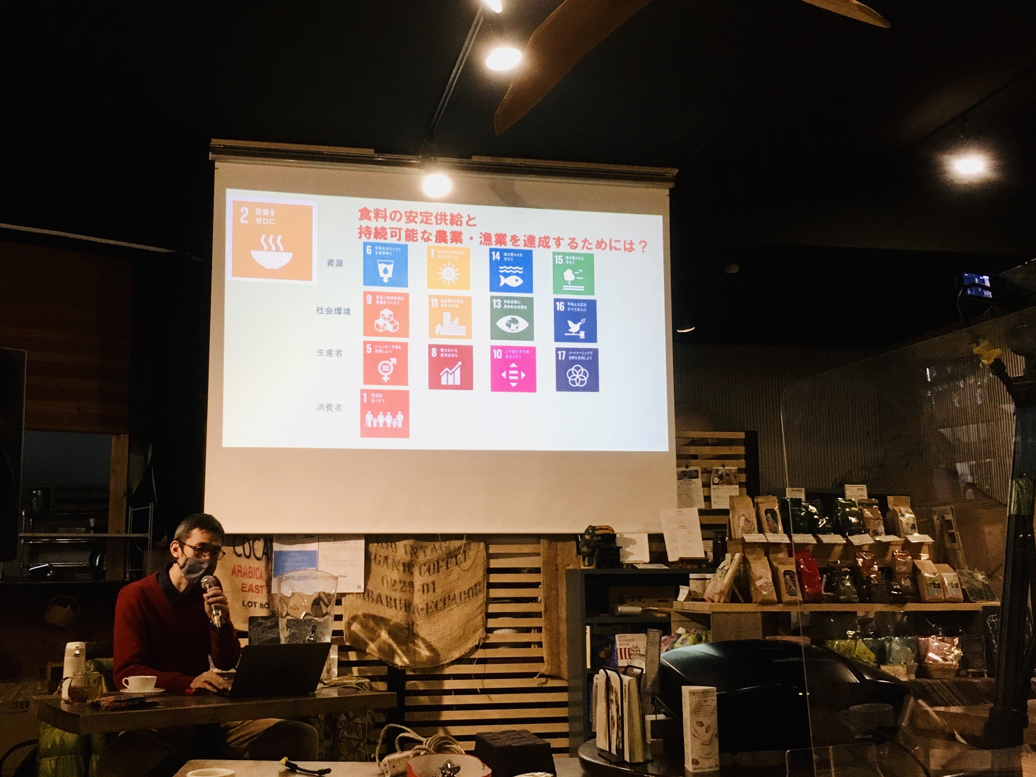 (1月下旬、カフェスロースタッフ・スローパートナーに向けてSDGs講座を開いて頂きました。)