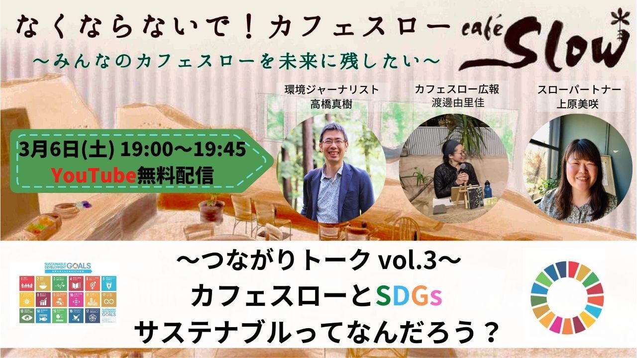 高橋真樹さん、カフェスロー広報 渡邊由里佳さん、スローパートナー上原との対談企画です。