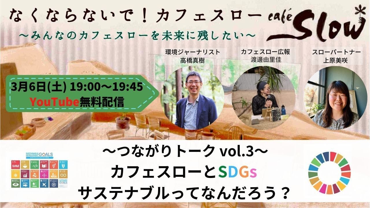 高橋真樹さん、カフェスロー広報 渡邊由里佳さん、スローパートナー上原、3人による対談企画です。