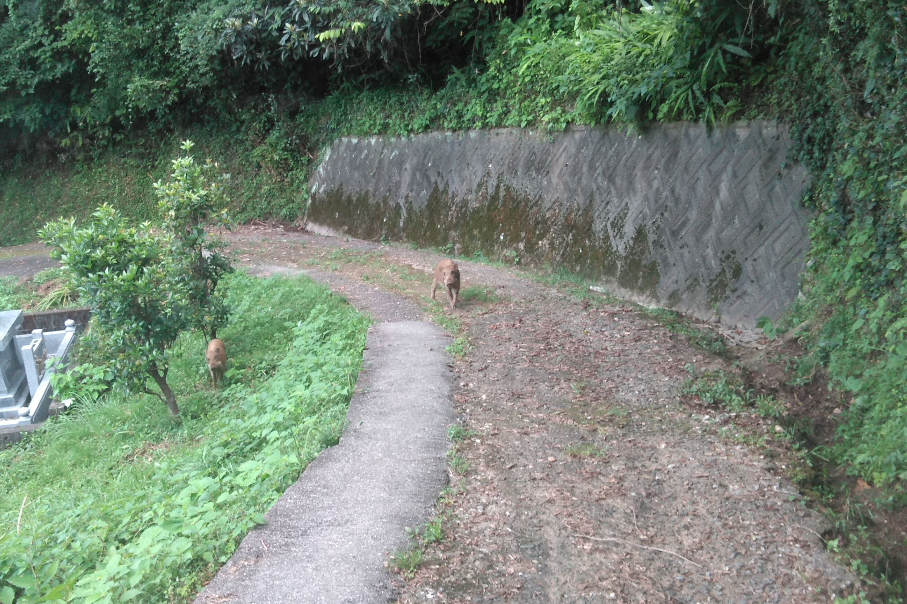 写真.文旦山に登る農道で遭ったイノシシ