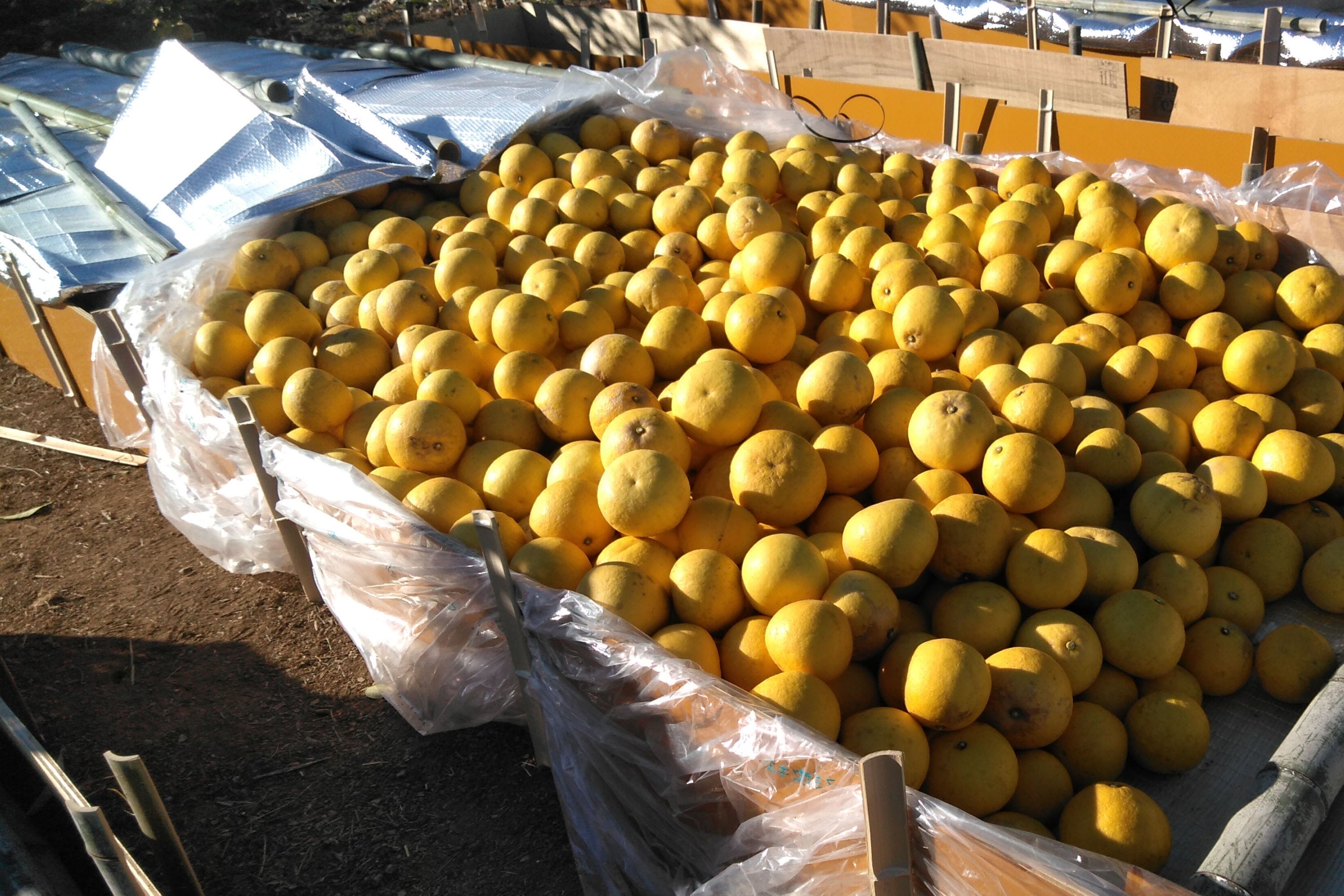 写真.伝統的な「野囲い」貯蔵されている土佐文旦