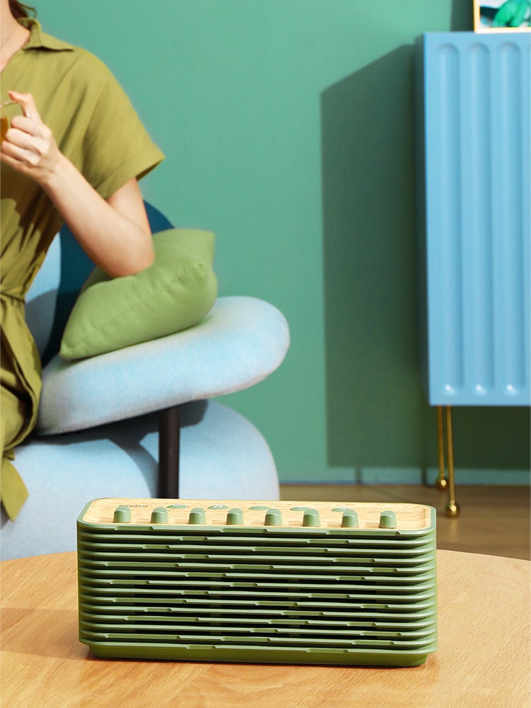 在宅ワーク中のデスクの上で、ティータイムのテーブルの上で、ベッドサイドで。本製品リラクゼーションスピーカー「Aegle」は、安らぎたいあなたのそばで音色を奏でます。