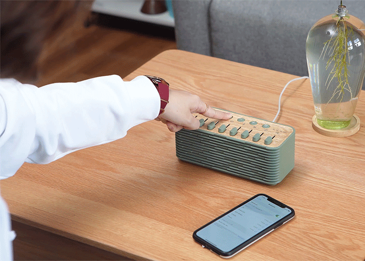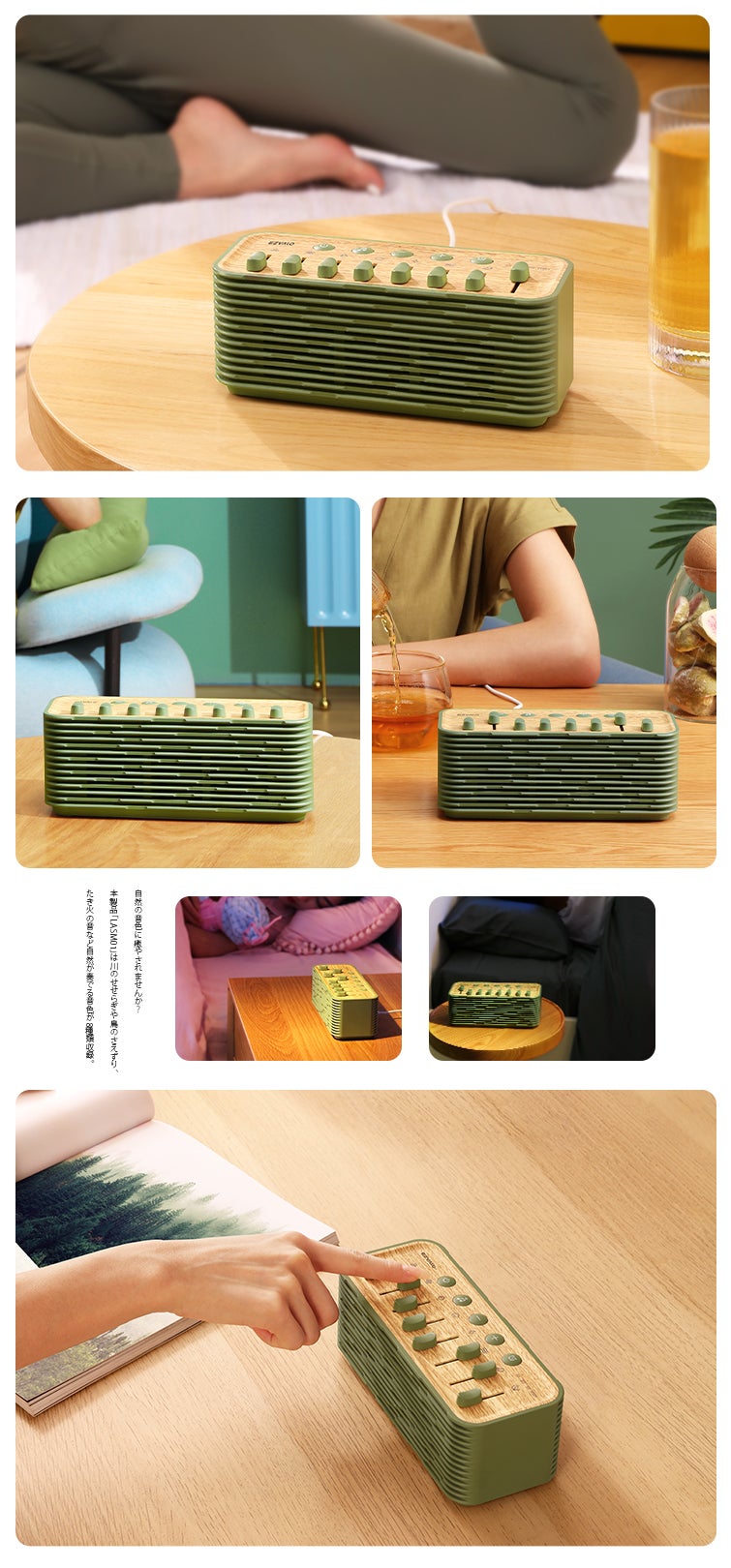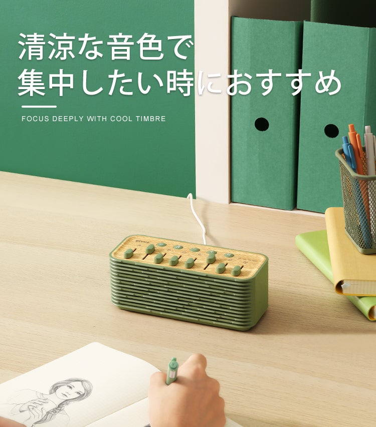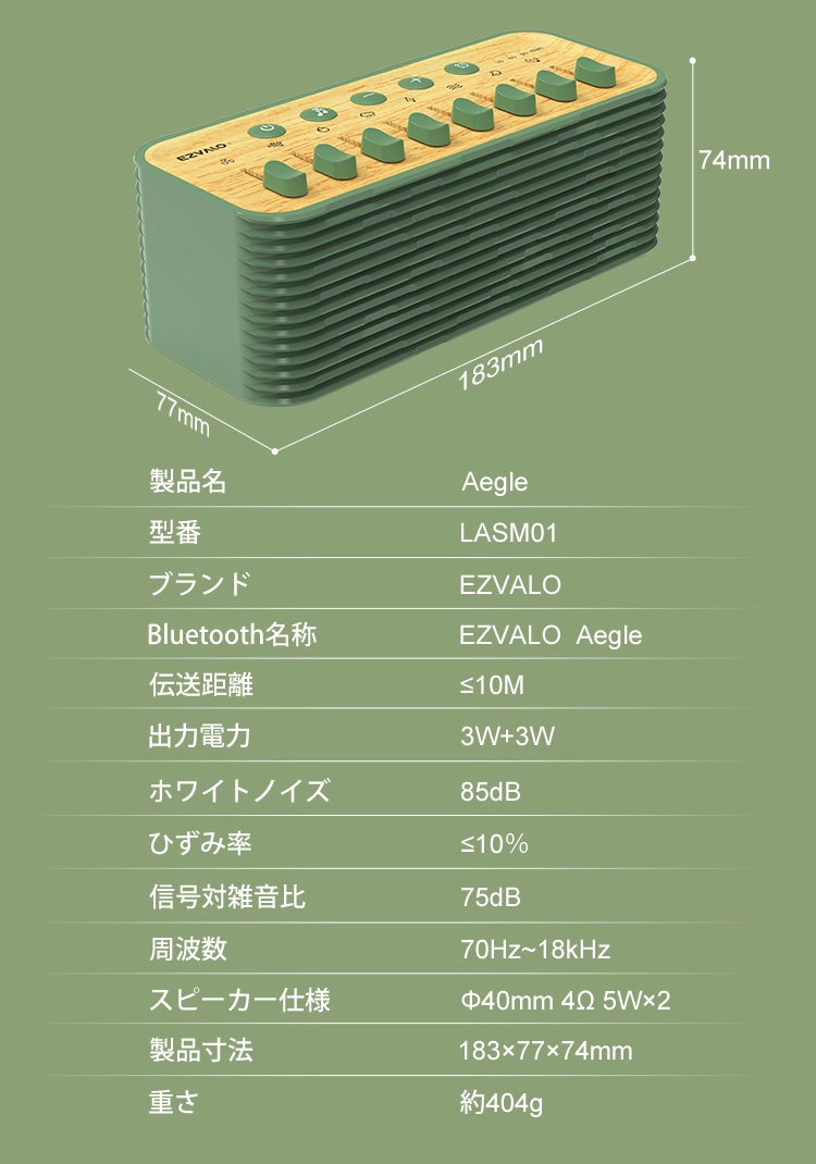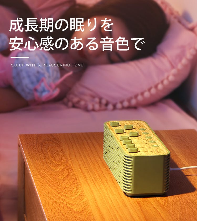 本製品「Aegle」は川のせせらぎや鳥のさえずり、たき火の音など自然が奏でる音色が8種類収録。気持ちの良い睡眠環境を作り出すホワイトノイズや、アルファ波音楽も収録し心地よい音を作り上げました。