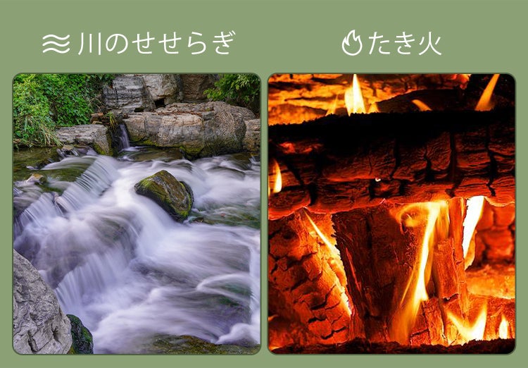 水が流れる音や、炎がパキパキと爆ぜる音などには、『1/fのゆらぎ』と呼ばれるゆらぎがあり、このゆらぎが気持ちを落ち着かせられると考えられています。