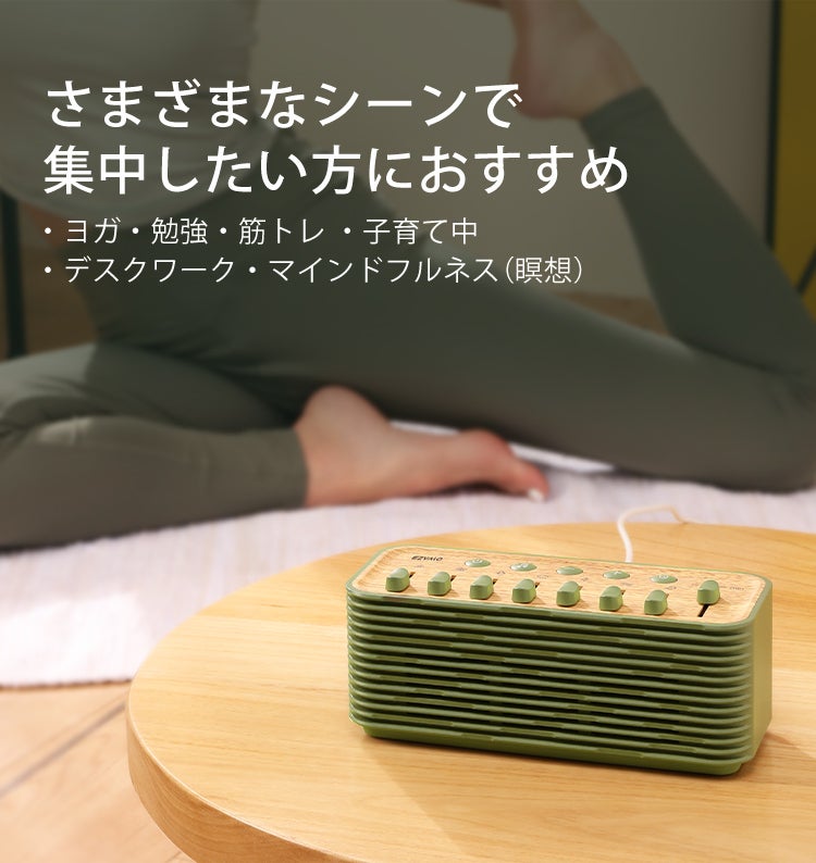 ヨガや瞑想、自宅でのトレーニング、デスクワークや勉強など集中したいシーンにホワイトノイズはおすすめで、いつもの習慣もいつも以上の効果が期待できそうです。