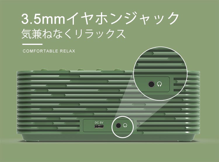 周囲にだれかいて、気軽に音楽を楽しめない場所でも大丈夫。内蔵しているイヤホンポートでヘッドホンを接続して、自分だけの空間に。周りの音を遮断して、耳に直接流れ込む自然の音色が和やかな時間に変えてくれます。