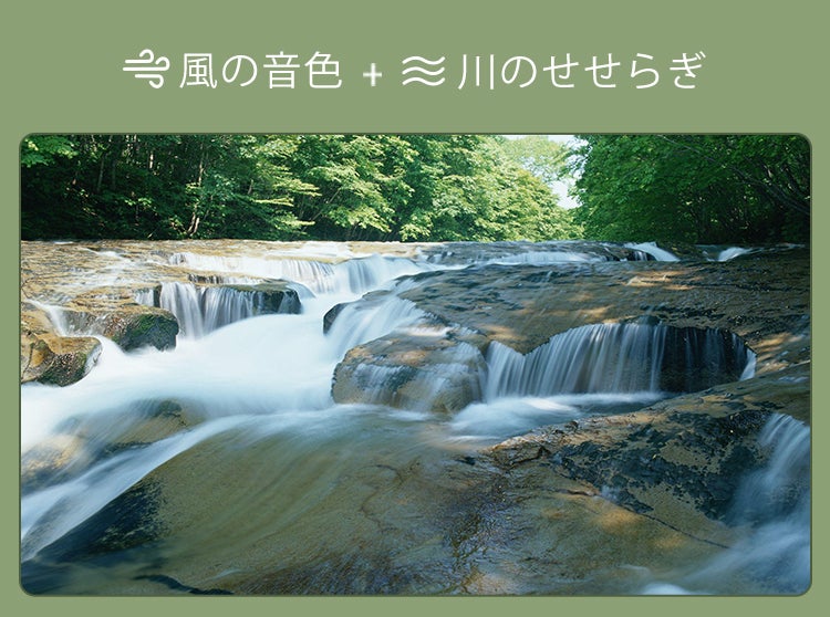 風音とせせらぎの音を組み合わせれば、山風の吹く川辺の情景が浮かび、そのさわやかな音色はお仕事のシーンでおすすめです。