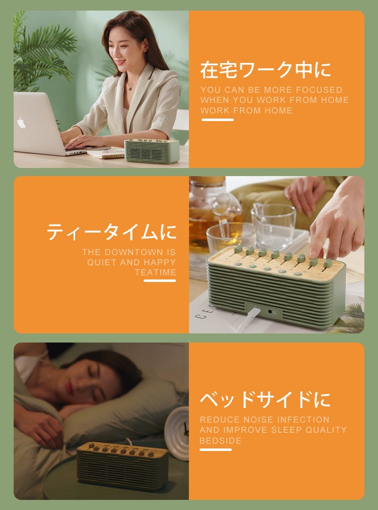アルファ波の発生を促す音楽も、本製品には収録されています。アルファ波音楽で落ち着く空間となり、夜には徐々に心地よい眠りへとあなたを導いてくれます。
