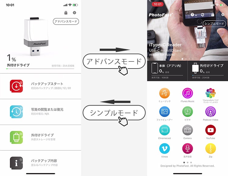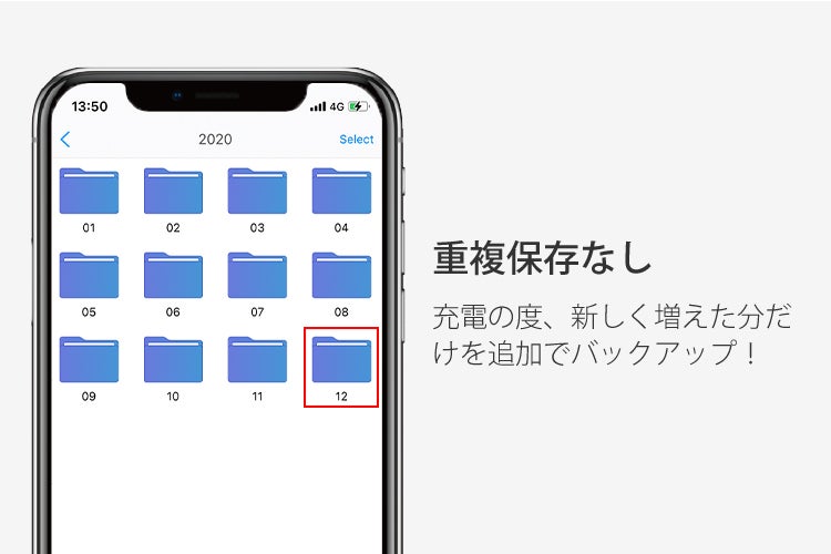 無料アプリ「PhotoFast ONE」をダウンロードして、バックアップしたデータを楽々管理。