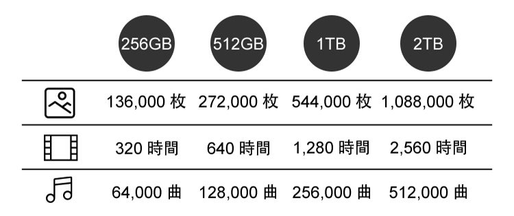 ▲このくらい保存できます!(※あくまで参考値です。)