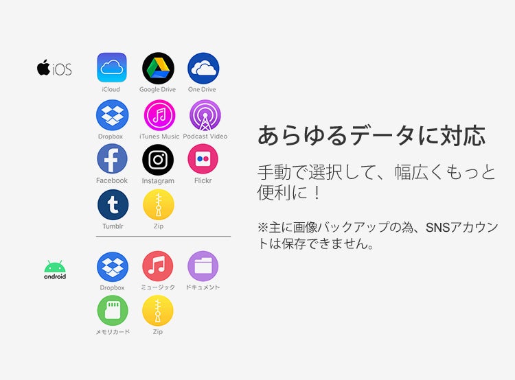 ※SNSをバックアップする場合はインターネット接続が必要です。