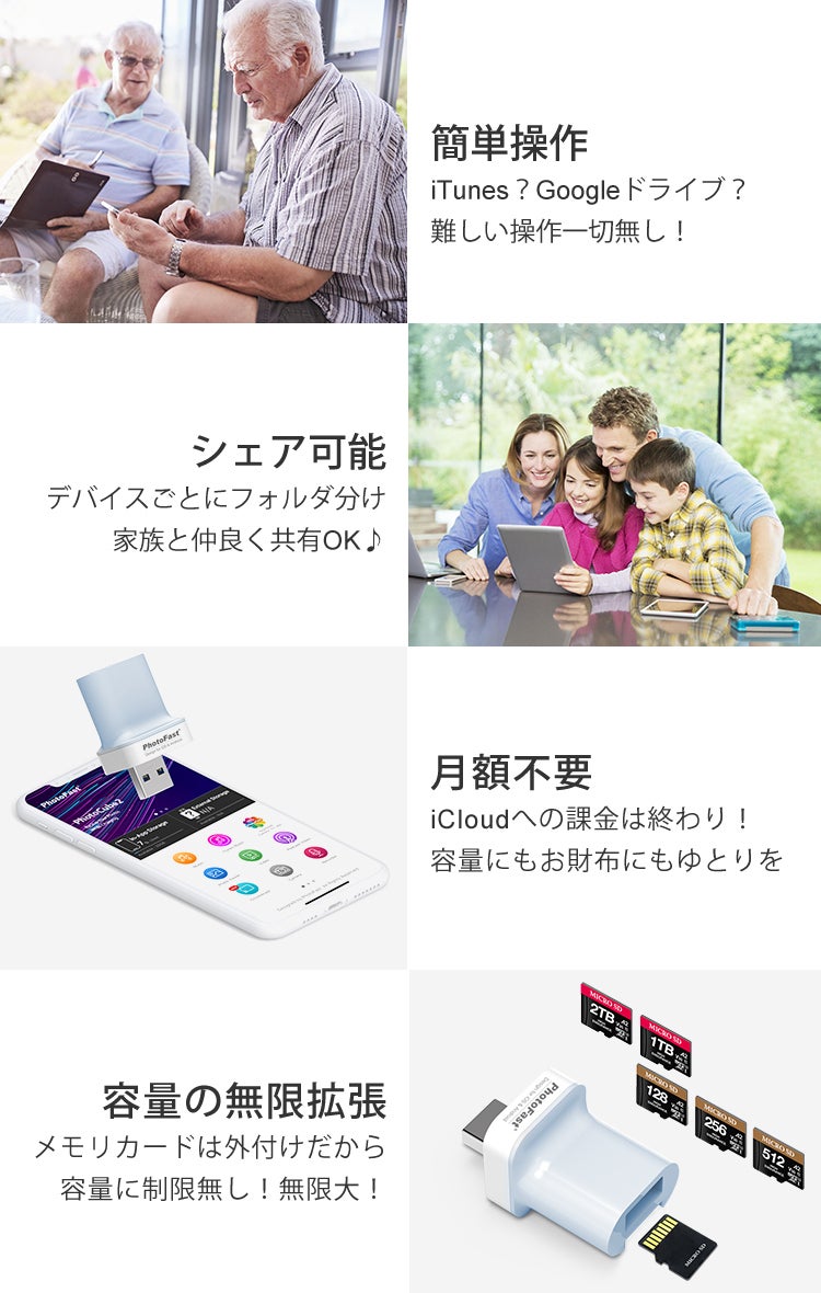 「PhotoCube 2」があれば容量問題はすべて解決!お子様やペットの成長記録・旅行の思い出・アプリのダウンロード、容量を気にすることなく、データを増やすことができます。