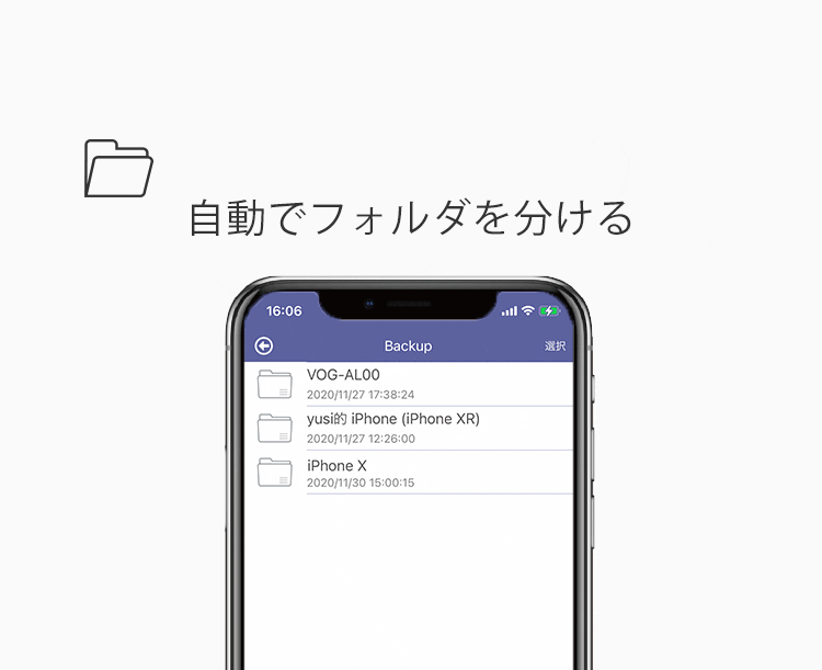 「PhotoCube 2」はデバイスごとに自動でフォルダを分けてバックアップが可能!