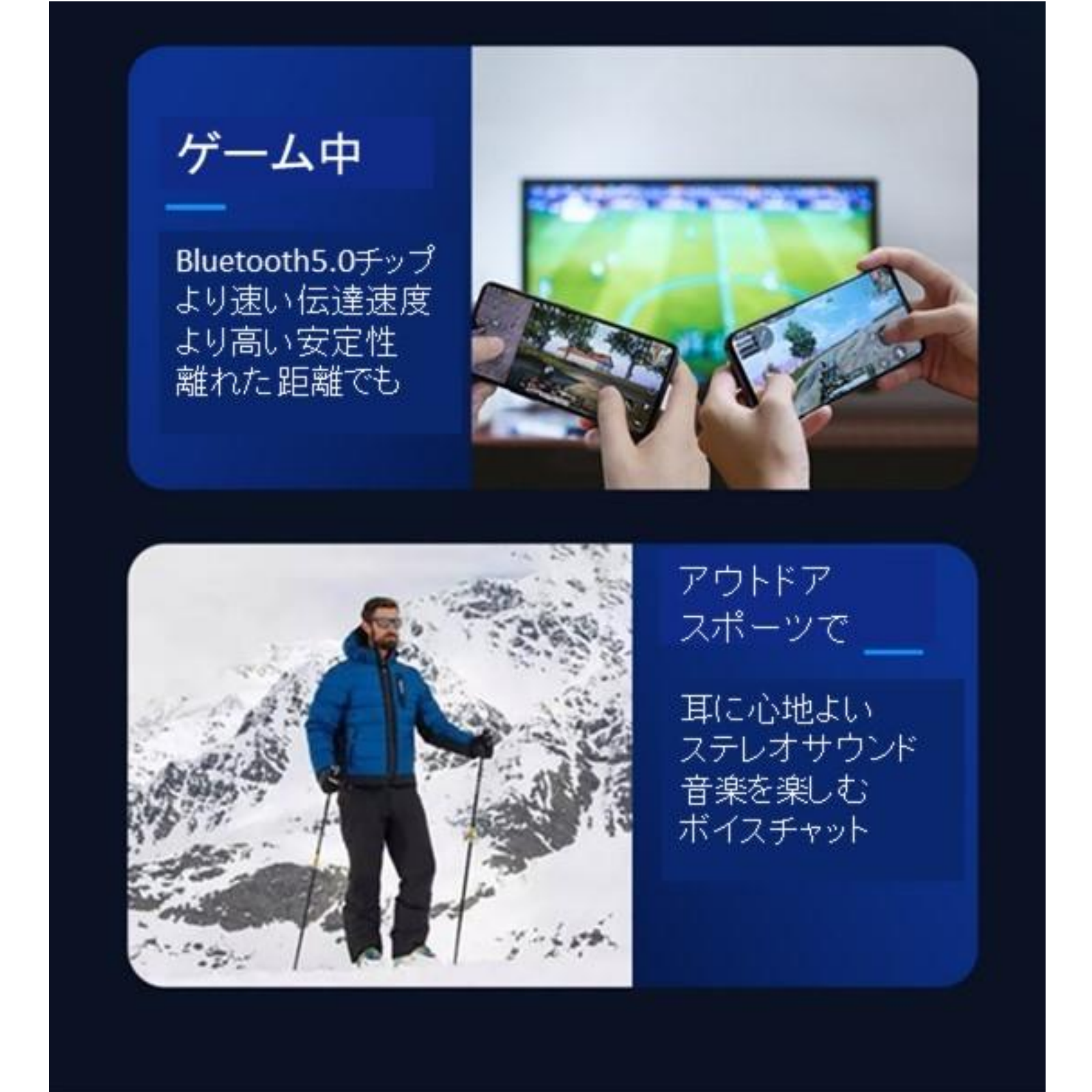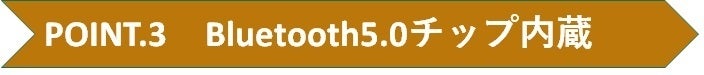 新世代のBluetooth5.0チップが組み込まれており、10mのバリアフリーで快適な音質、遅延のない安定したサウンドが聴けます。