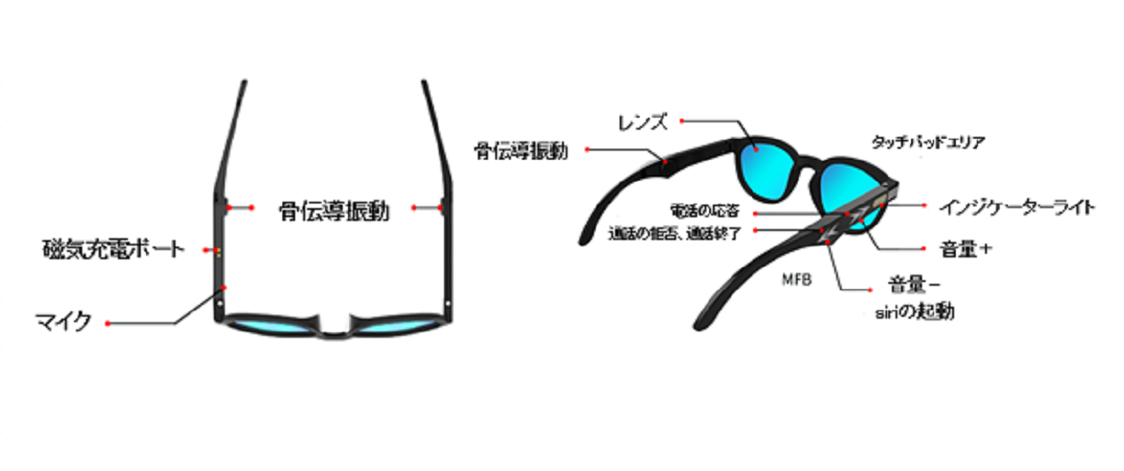 のテンプルで自動的にBluetoothに接続・使用できます。