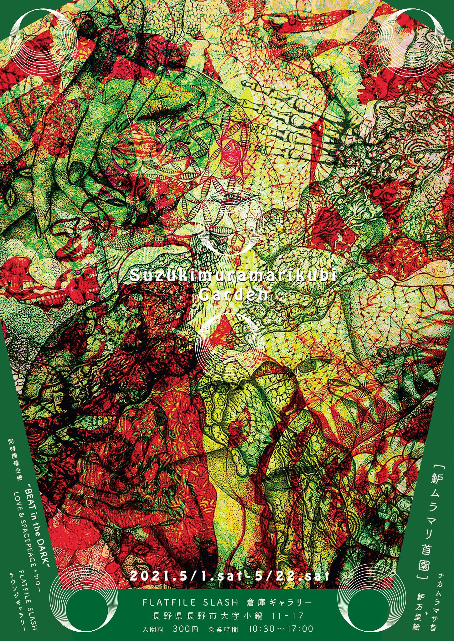 こちらのポスターには、今回の展覧会のクラウドファウンディングリターン品の一環として制作された魲ムラマリ首作品(ナカムラマサ首+魲万里絵)のUVプリント作品の新作「ハンモン」が採用されております。そしてこのポスターデザインが今展覧会のキービジュアルでもあります。