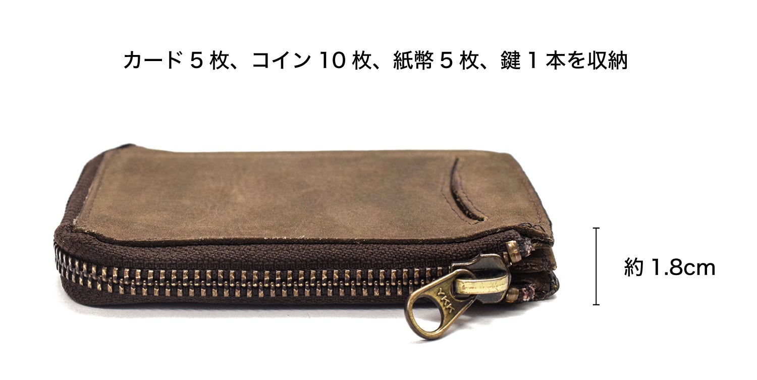 「TIDY one」はファスナー以外を全て革のみで製作することで、革本来の強度と伸縮によって型崩れを長く防止してくれます。