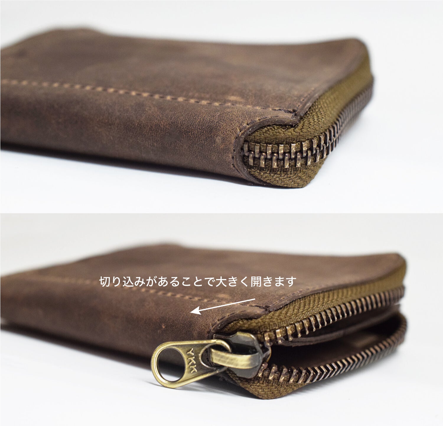 L字ファスナーながらもガバッと開くことが可能になりました。