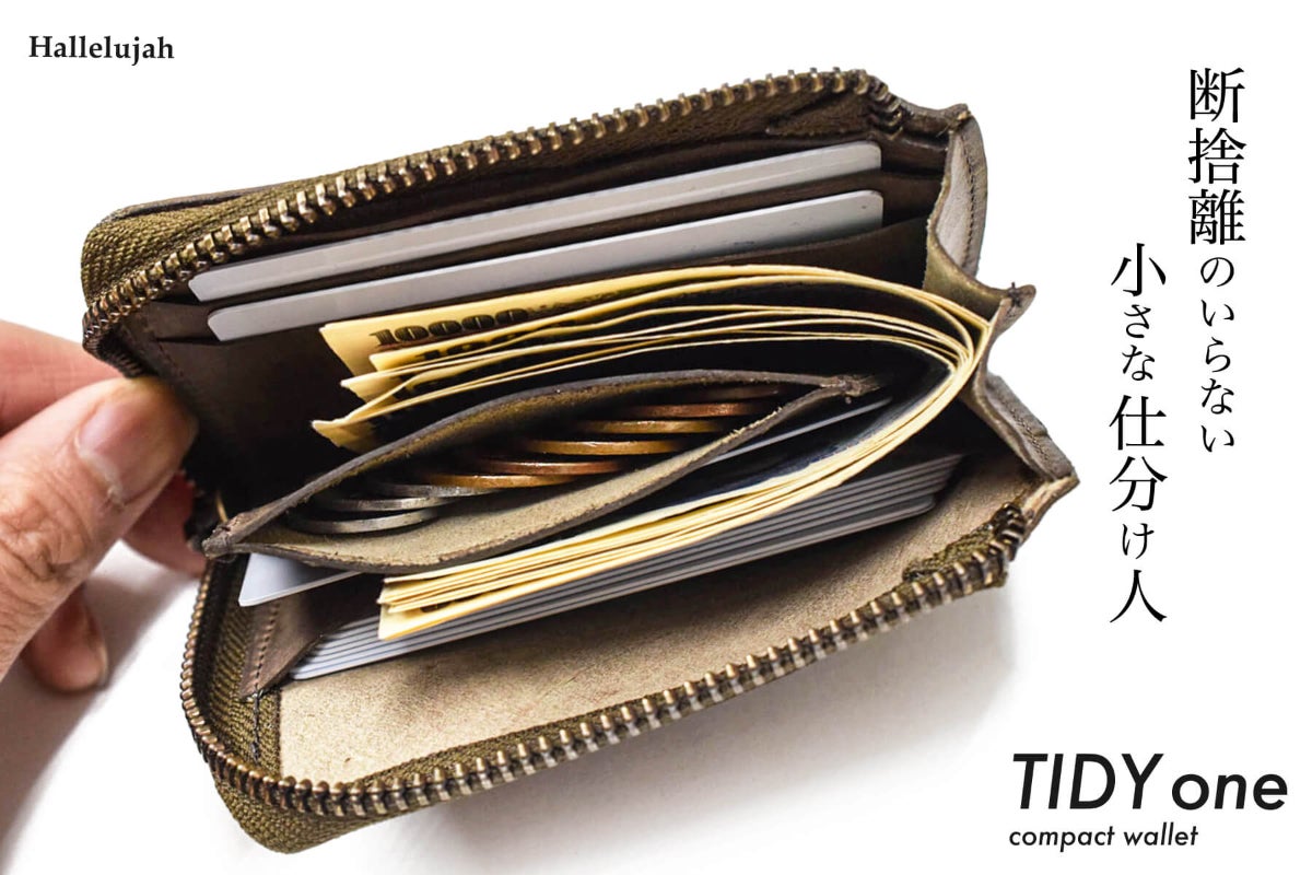 コンパクトウォレット「TIDY one」は、最低限の持ち物へ無理に断捨離することなく、仕分け構造によって体積をグッと減らせる革財布です。