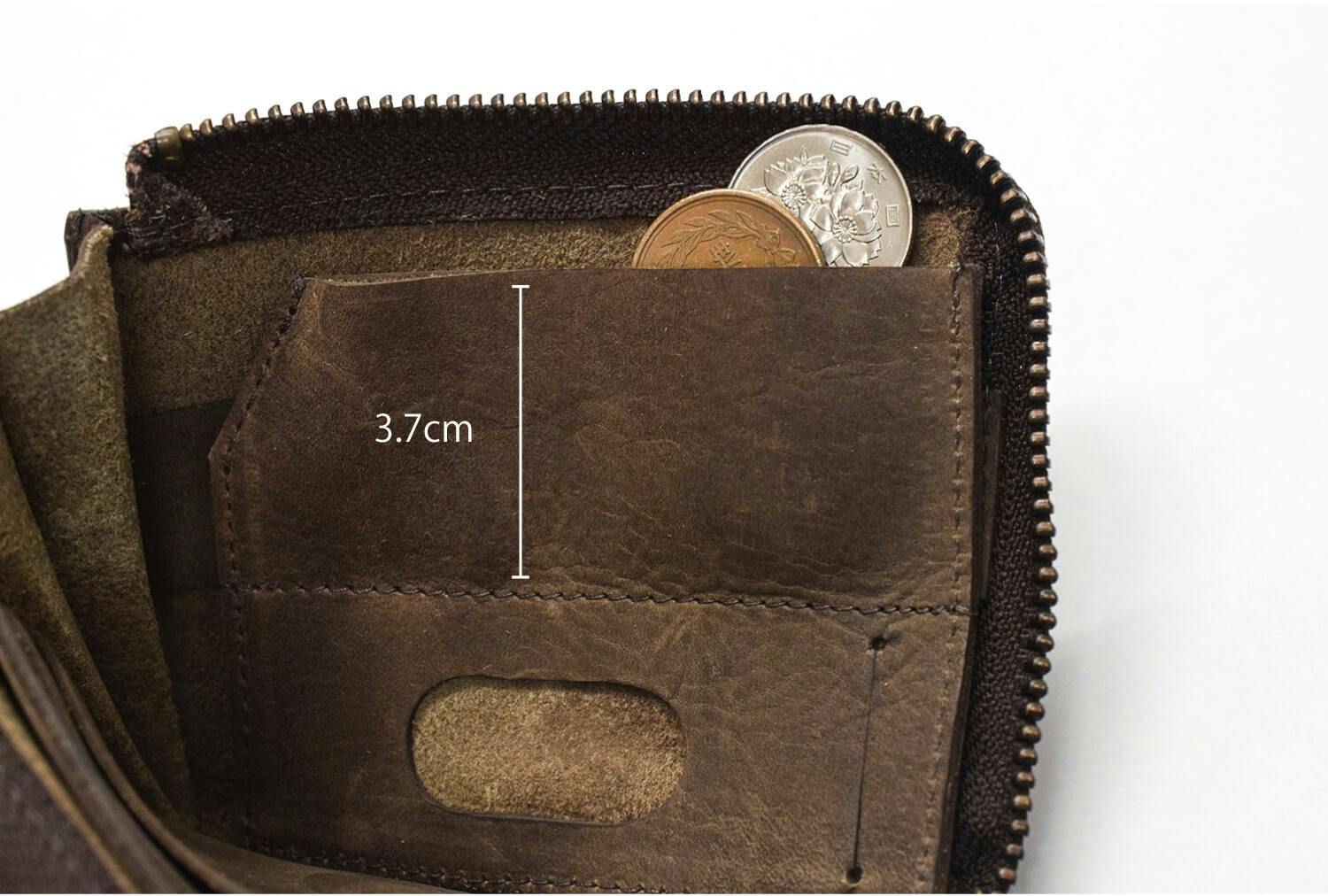 どれだけ容量の多い小銭入れでも底が深いと上部に無駄なスペースができ、取り出しにくく、どんどん下に溜まって厚みが出てきます。