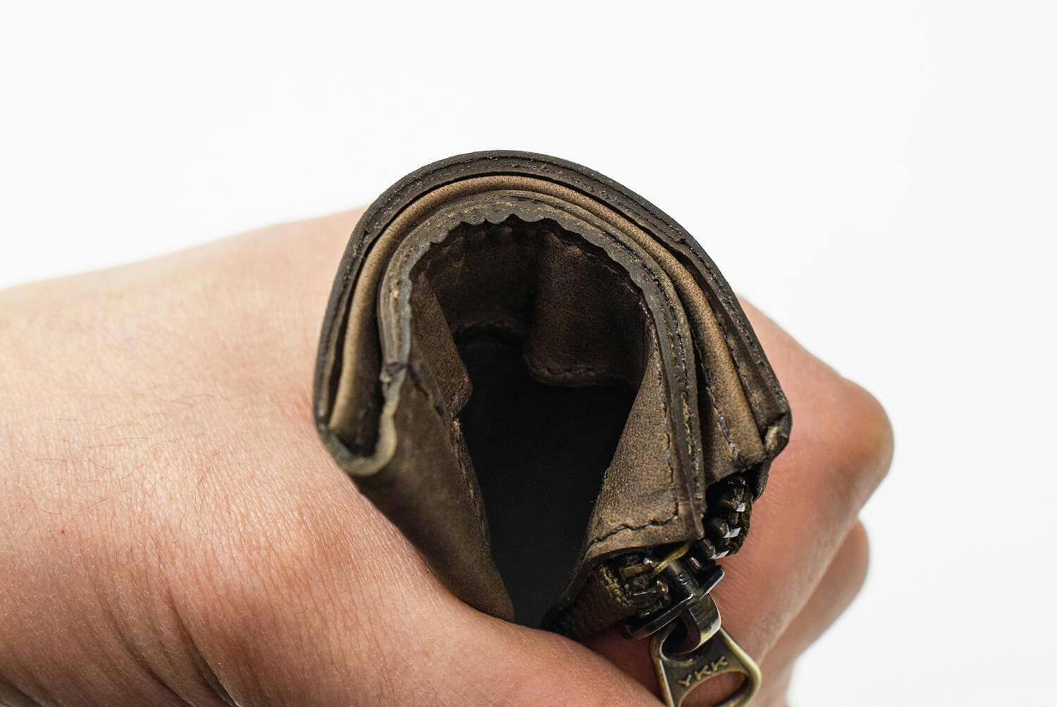 そう思われるかもしれませんが、通常財布には見えない部分に芯材や裏地が入っており、ハリと強度を持たせています。