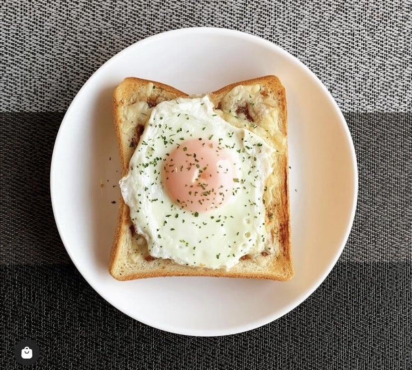↑くるみ味噌チーズトースト 目玉焼きのせ