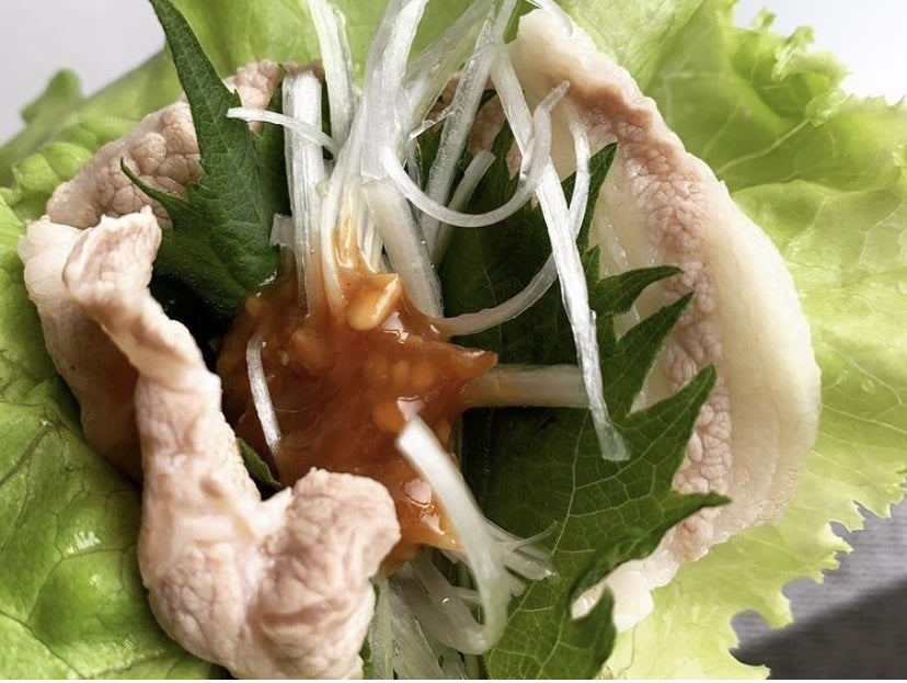 ↑ゆず味噌で食べる ゆで豚サラダ