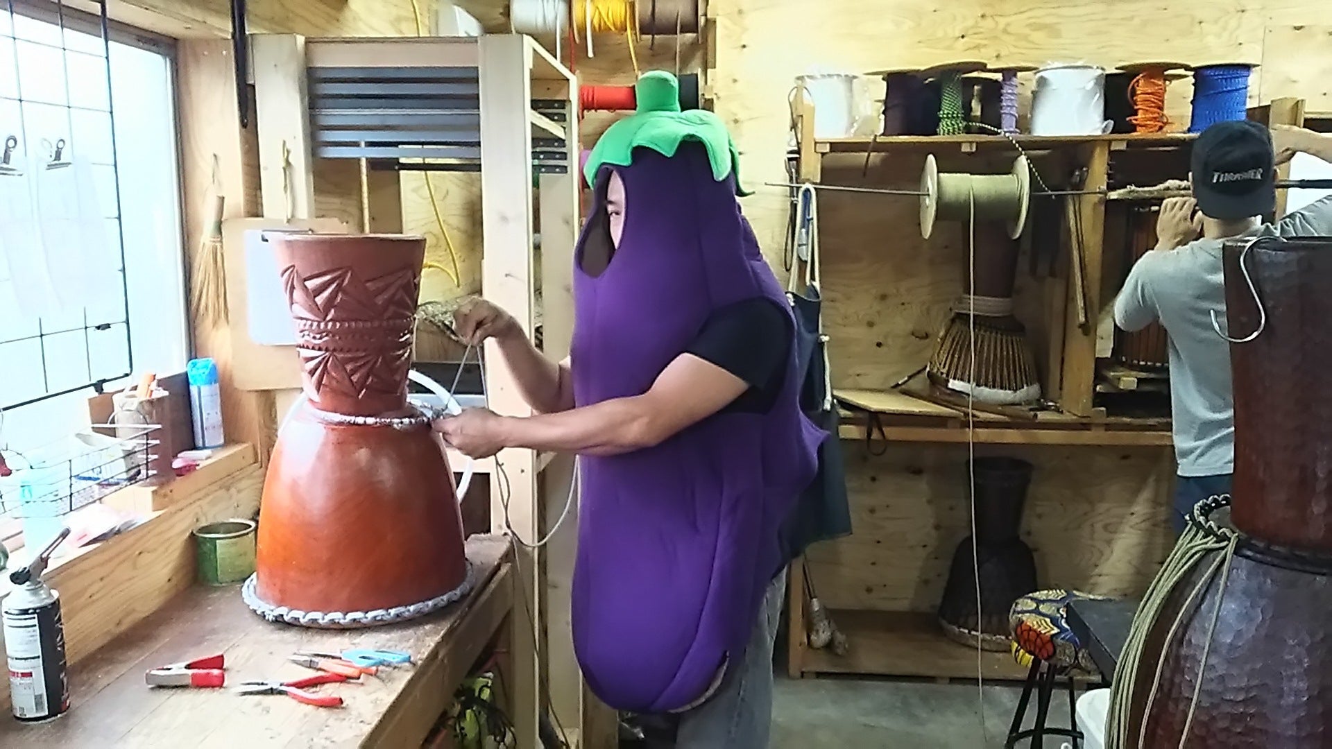ずっと皮が破れた状態でほっておくとジェンベが可哀そう、という気持ち的な側面と、ジェンベのボディは定期的に叩いて音を共鳴させる振動が木に伝導することで少しづつ木が熟成していき「経年良化」していく物質的側面があります。