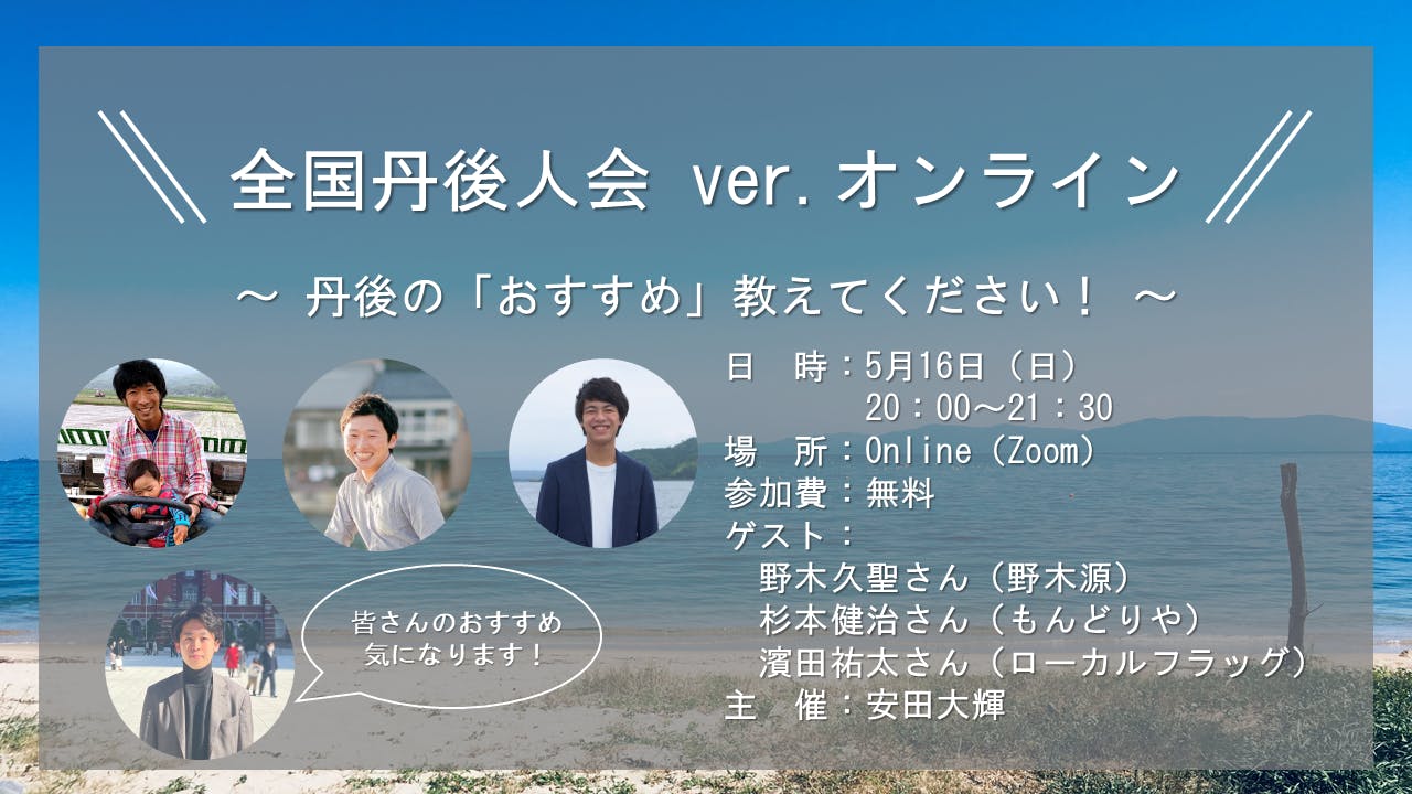 さて、「全国丹後人会」を5月16日(日)20:00~21:30に開催させていただきました!