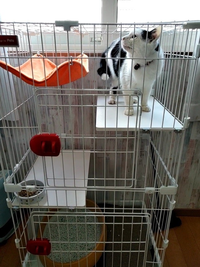 現在、コタツはゲージ内で待機中です。