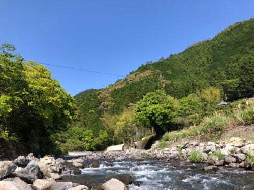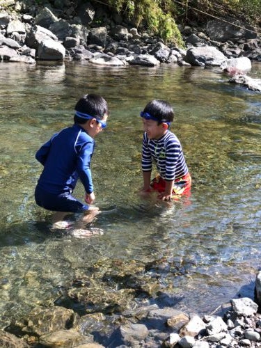 お昼を済ませて、子どもたちお待ちかねの川へ。
