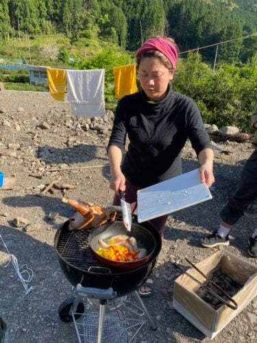 食事は基本的に土佐備長炭一(いち)さんの炭でBBQ。