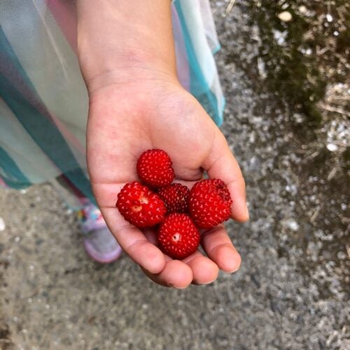 野イチゴもあって、子どもたちと一緒にパクパクと。